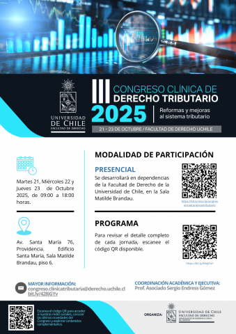 Los profesores Gonzalo Vergara y Mauricio Ramírez participarán en el Congreso Tributario 2025, de la Clínica de Derecho Tributario de la Universidad de Chile.